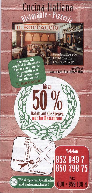 Ristorante Il Boccaccio Bundesallee 109 12161 Berlin Tel.: 030-8528497 |